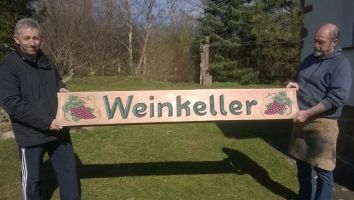 Wolfgang Dittrich stellte uns den Arbeitsstand der künftigen Elemente zur Dekoration unseres Weinkellers vor. Der Schriftzug als auch Bacchus werden den Eingangsbereich verzieren.