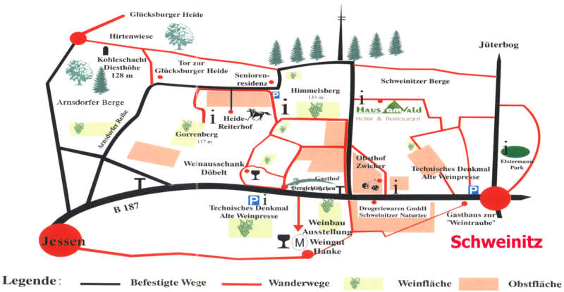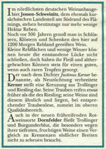 - zwischen Schweinitz und Jessen findet man das nördlichste zusammenhängende Weinanbaugebiet Europas Link zum Weingut Hanke auf den Jessener Unterbergen
